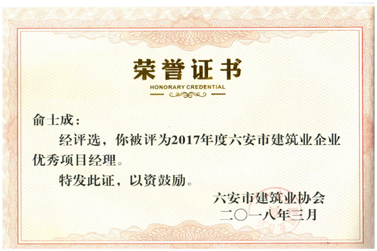2017年度六安市建筑業(yè)企業(yè)優(yōu)秀項(xiàng)目經(jīng)理