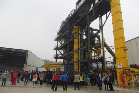 17日上午參會人員到我公司的瀝青攪拌中心現(xiàn)場考察廠拌熱再生技術(shù)。